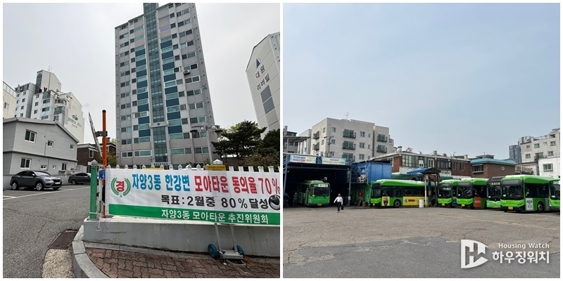 이와 달리, 자양3동 통합개발(남측구역)인 자양번영로3나길 일대는 가로주택사업 등이 추진 중인 상황인 만큼, 사업을 유지하거나 모아타운 성격으로 확대해 사업이 진행될 전망이다. 구역별 여건에 맞는 정비방식 도입이 가능하다는 것이 구청 측 입장이다. 가로주택 조합은 한강변 프리미엄을 확보하고자 제자리 입주를 검토 중이며, 버스 차고지 이전 문제를 안고 있는 상황이다.