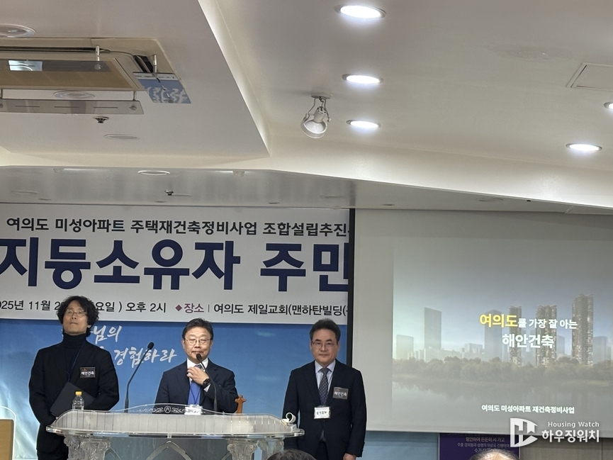 당일 발표를 맡은 ㈜해안건축 관계자는 "최단기간 내 인허가 업무를 받을 수 있도록, 당사 역량을 집중할 계획"이라며 "조합원 100%가 샛강 조망권을 누리고, 상가와 여의도역의 연계성을 최대한 잘 풀어내 보겠다"고 말했다.