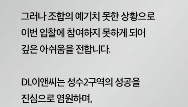 성수1구역이 유효 경쟁입찰 성사를 바라는 여론이 들불처럼 번짐에 따라, 결국 시공사 선정을 위한 입찰계획(안) 수정에 나선다. 조합원 발의로 진행된 대의원회가 부결되면서 기존 입찰공고로 진행해도 문제없는 상황이었지만 거센 민심을 한 차례 잠재우기 위함이 아니겠냐는 게 업계 중론이다. 무엇보다 오랜 기간 조합원들의 요청에도 움직이지 않았던 성수1구역이 갑작스러운 행보를 보이는 이면에는 조합장 해임총회를 무마시키고자 하는 다른 목적으로 보는 분위기도 감지된다. 조합원들에게 안내된 이날 공지가 입찰계획(안)의 전면 수정이 아닌, 극히 일부분 수정에 한해 진행될 예정으로 보였기 때문이다. 이에, 조합이 당장 직면한 해임총회를 무마시키고 단순히 현 상황만을 타개하기 위한 목적만이 반영됐다는 분석도 나온다. 실제 경쟁입찰을 유도시킬만한 수준의 변경이 아니라는 지적이다. 현대건설과 HDC현대산업개발의 입찰 참여 여부는 입찰계획(안)의 변경 정도와 범위에 따라 결정될 전망이다. 8일 정비업계 따르면 성수1구역 재개발 조합은 이달 9일(화) 긴급이사회를 열어 1차 입찰을 취소하고, 입찰계획(안) 수정 후 재입찰을 진행키로 결정했다. 이사회와 대의원회 의결 절차를 순차적으로