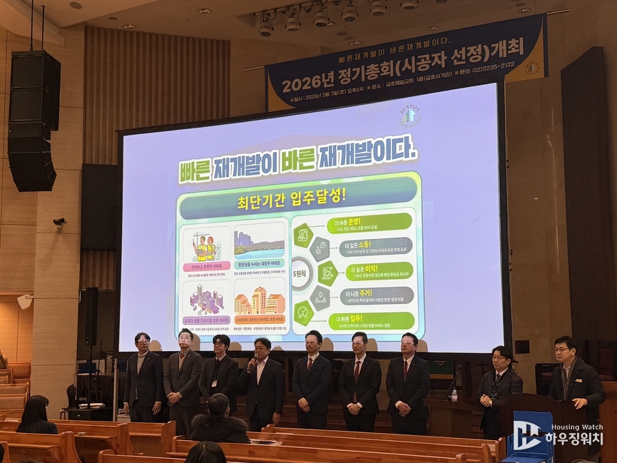 8일 정비업계 따르면 금호21구역 재개발 조합(양갑승 조합장)은 2026년 정기총회를 개최, 우선협상대상자였던 롯데건설을 시공사로 선정하는 안건을 의결했다. 총 조합원 860명 중에서 현장에 직접 참석한 조합원만 752명에 달할 정도로 현장은 북적였다. 첫번째 안건으로 상정된 시공사 선정의 건은 ▲찬성(649명) ▲반대(70명) ▲기권·무효(46명) 등으로 집계됐다. 그외 운영비·사업비 예산(안)도 모두 통과됐다.