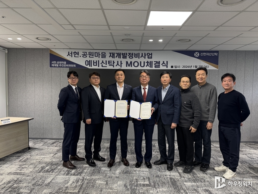 7일 정비업계 따르면 서현·공원마을 추진준비위원회(김영민 준비위원장)는 이날 신한자산신탁을 예비 신탁사로 선정하는 내용의 업무협약(MOU)을 체결했다. 해당 사업장은 [노후계획도시 정비및지원에 관한 특별법]에 따라 신탁방식의 재개발 사업 추진을 목표로 하고 있다. 준비위원회는 작년 12월 나라장터로 입찰공고를 진행했고, 초기 사업의 안정화를 도모하고자 자금력을 갖춘 신한자산신탁을 우선협상대상자로 선정한 바 있다.