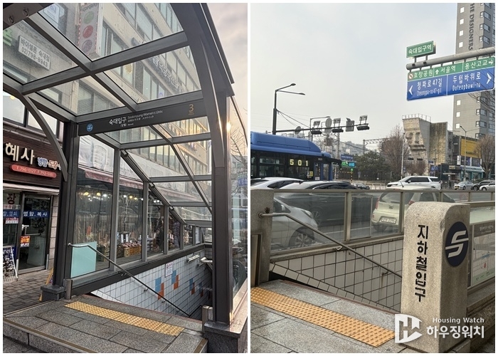 지하철 출입구(4호선 숙대입구역)의 처리방안도 눈에 띄는 부분 중 하나다. 대상지 내엔 숙대입구역 3,4번 출입구 두 곳이 존재하는데, 검토 과정에서 보행편의성을 위해 건축물 내로 이전하라는 방침이 나왔다. 따라서 남영4-1구역은 ▲계단 ▲에스컬레이터 ▲엘리베이터를 설치한 후 지하연결통로와 출입구를 연결해 이동 편익을 유도한다는 계획이다.