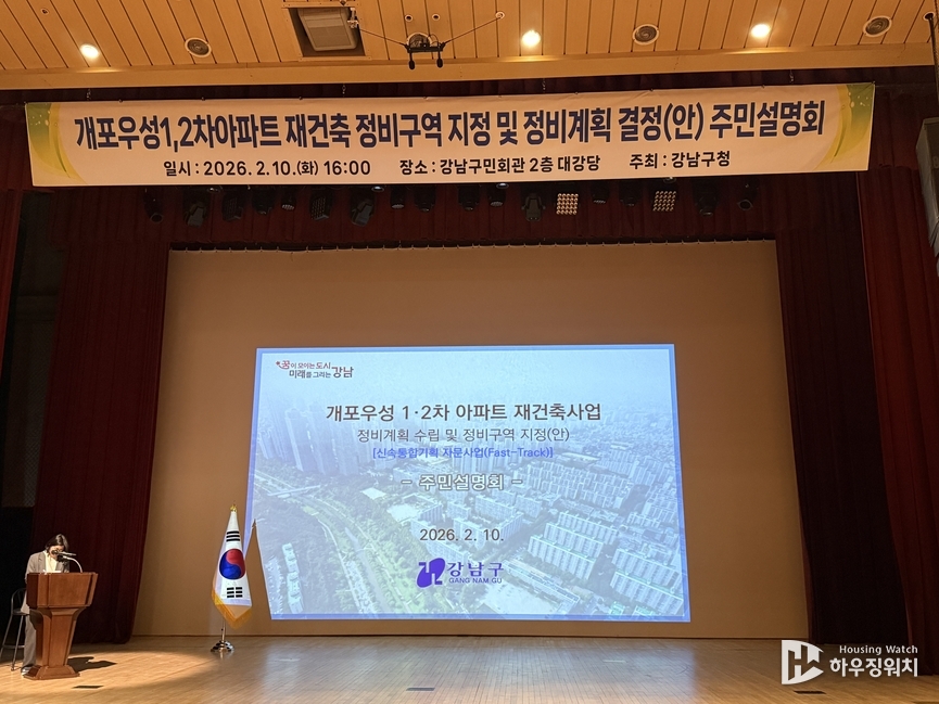 5일 정비업계 따르면 최근 강남구청 주관 하에 개포우성1·2차의 정비계획(안) 수립을 위한 법정 주민설명회가 개최됐다. 현재 대상지는 신통기획 자문회의 2차 결과와 관련 부서 조치의견 등을 종합적으로 검토해 정비계획(안)을 마련한 상태다. 추가적으로 3차 자문회의가 없을 시, 서울시 도계위 심의를 거쳐 구역지정 고시 단계에 돌입한다는 계획이다.