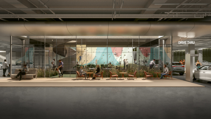 라이브그라운드는 차량 승하차와 로봇 서비스가 병행되는 통합 드롭오프존(Welcome Concourse), 조경시설과 카페 시설이 연결된 드라이브스루(Park and Ride)존 2개 구역으로 구성된다. 만약 입주민이 차량을 세우면 대기 중이던 생활 로봇이 나와 차량에서 커뮤니티 라운지 내부까지 짐을 옮겨준다. 또 지상의 티하우스에서 커피를 시켜 지하 공간으로 자연스럽게 이동해 공간의 제약없이 휴식을 취할 수 있는 여건도 보장된다.